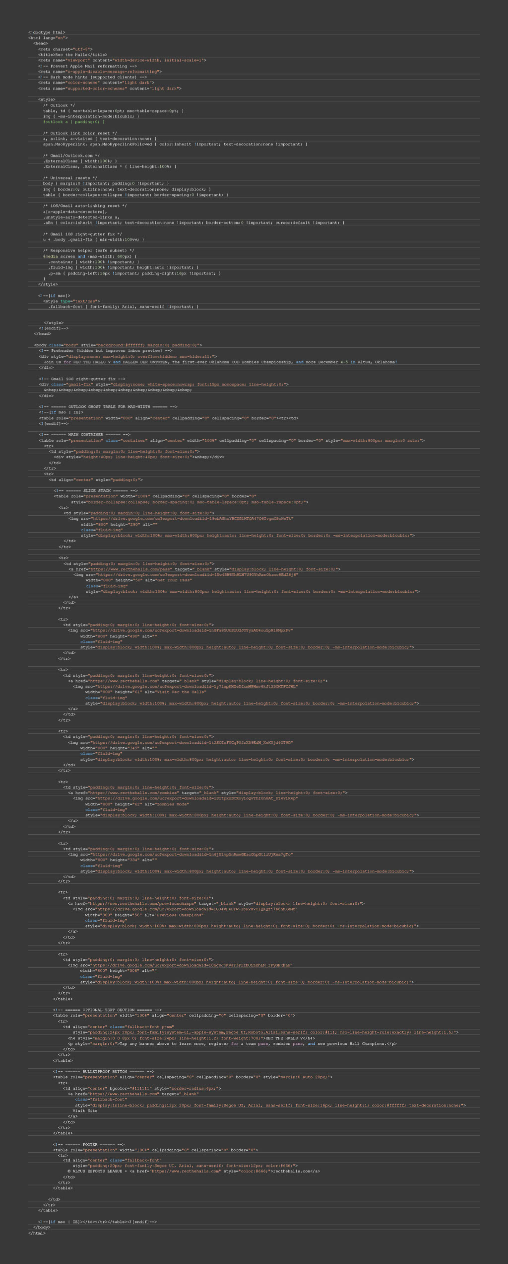 THE REC THE HALLS V AND HALLEN DER UNTOTEN MARKETING EMAIL AND THE CODE INVOLVED FOR THE EMAIL TO FORMAT CORRECTLY WITH ALL EMAIL SERVERS.